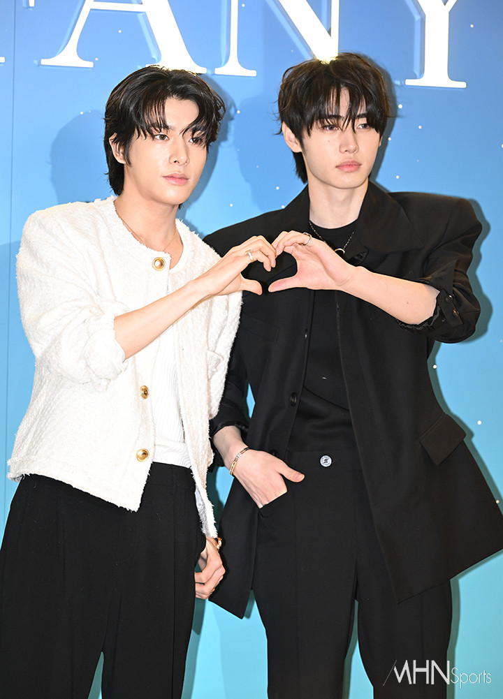 (MHN스포츠 이현지 기자) 그룹 엔하이픈 제이크, 성훈이 13일 오전 서울 송파구 롯데월드몰에서 진행된 쥬얼리 브랜드 팝업 행사에 참석해 포토타임을 갖고 있다.