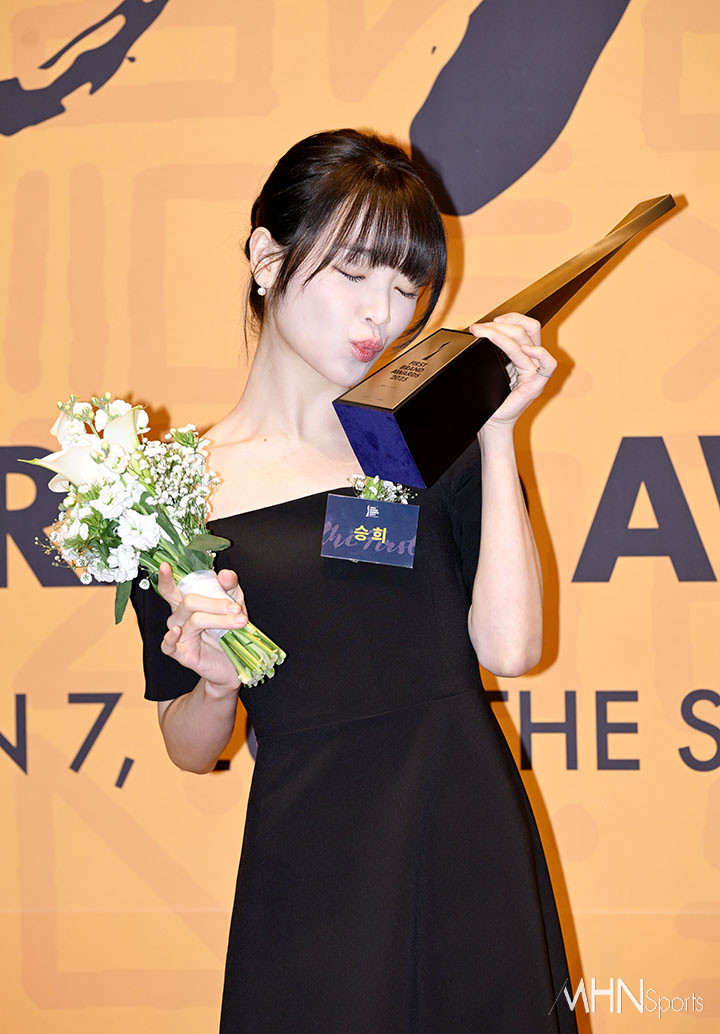 이날 시상식에 참석한 그룹 오마이걸 승희가 포토타임을 갖고 있다.