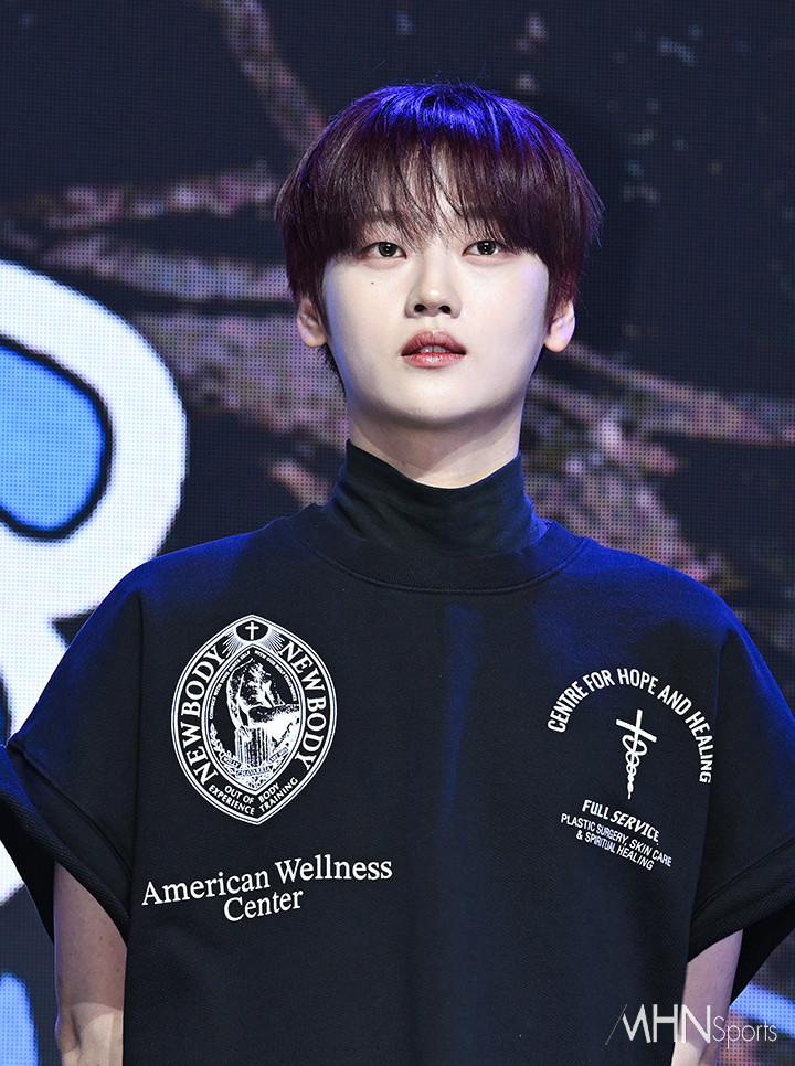 (MHN스포츠 이현지 기자) 그룹 위아이 김동한이 15일 오후 서울 서대문구 예스24 원더로크홀에서 진행된 미니 7집 'The Feelings'(더 필링스) 발매 기념 프레스 쇼케이스에서 인사를 하고 있다.
