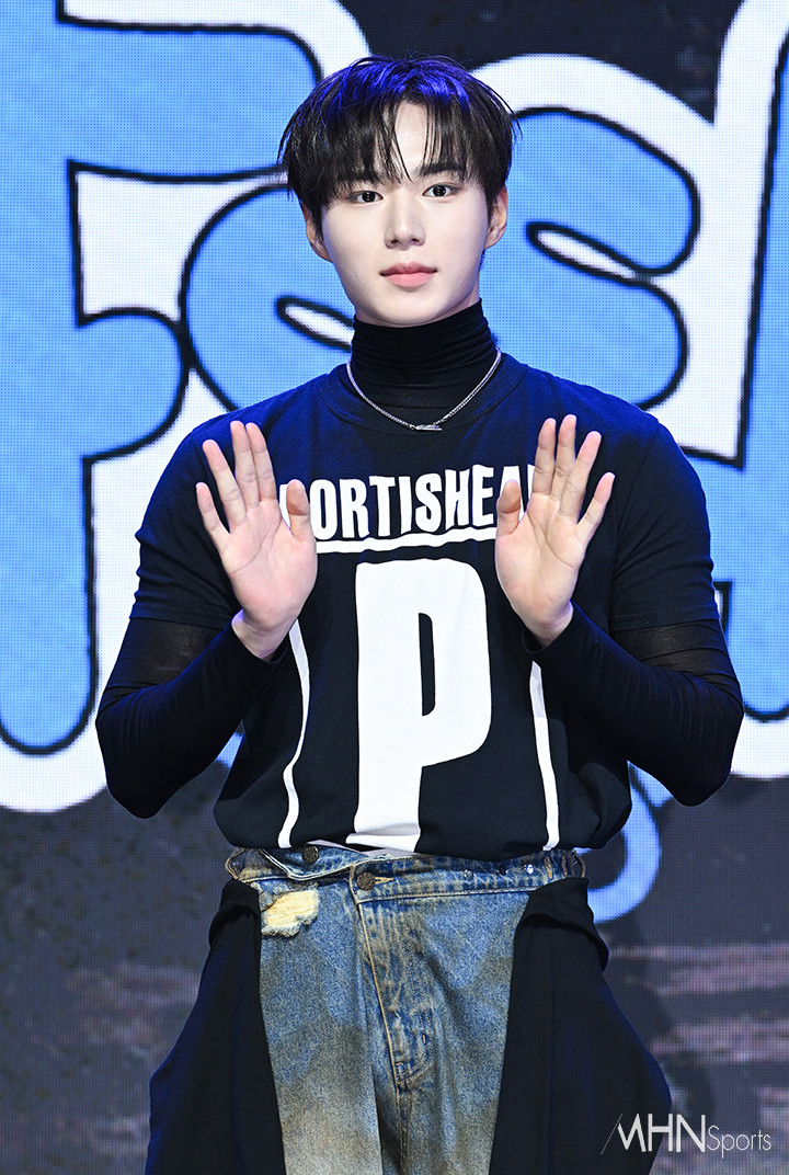 (MHN스포츠 이현지 기자) 그룹 위아이 김준서가 15일 오후 서울 서대문구 예스24 원더로크홀에서 진행된 미니 7집 'The Feelings'(더 필링스) 발매 기념 프레스 쇼케이스에서 인사를 하고 있다.