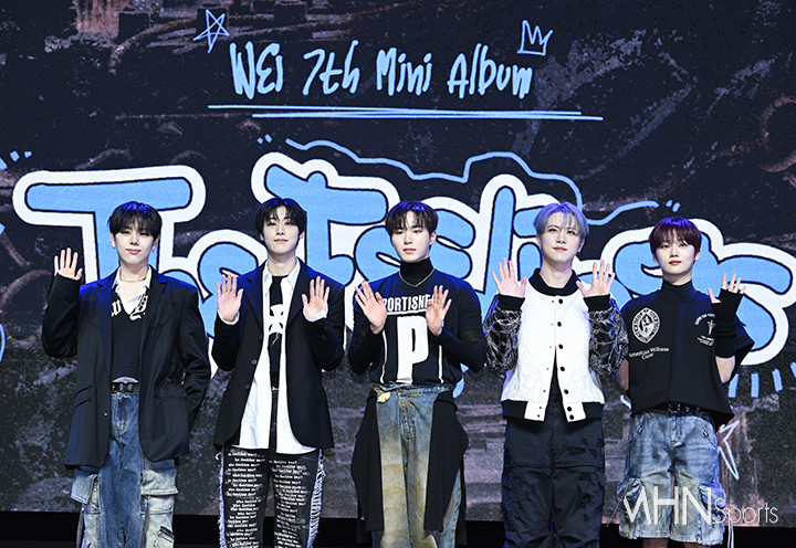 (MHN스포츠 이현지 기자) 그룹 위아이가 15일 오후 서울 서대문구 예스24 원더로크홀에서 진행된 미니 7집 'The Feelings'(더 필링스) 발매 기념 프레스 쇼케이스에 참석해 포토타임을 갖고 있다.