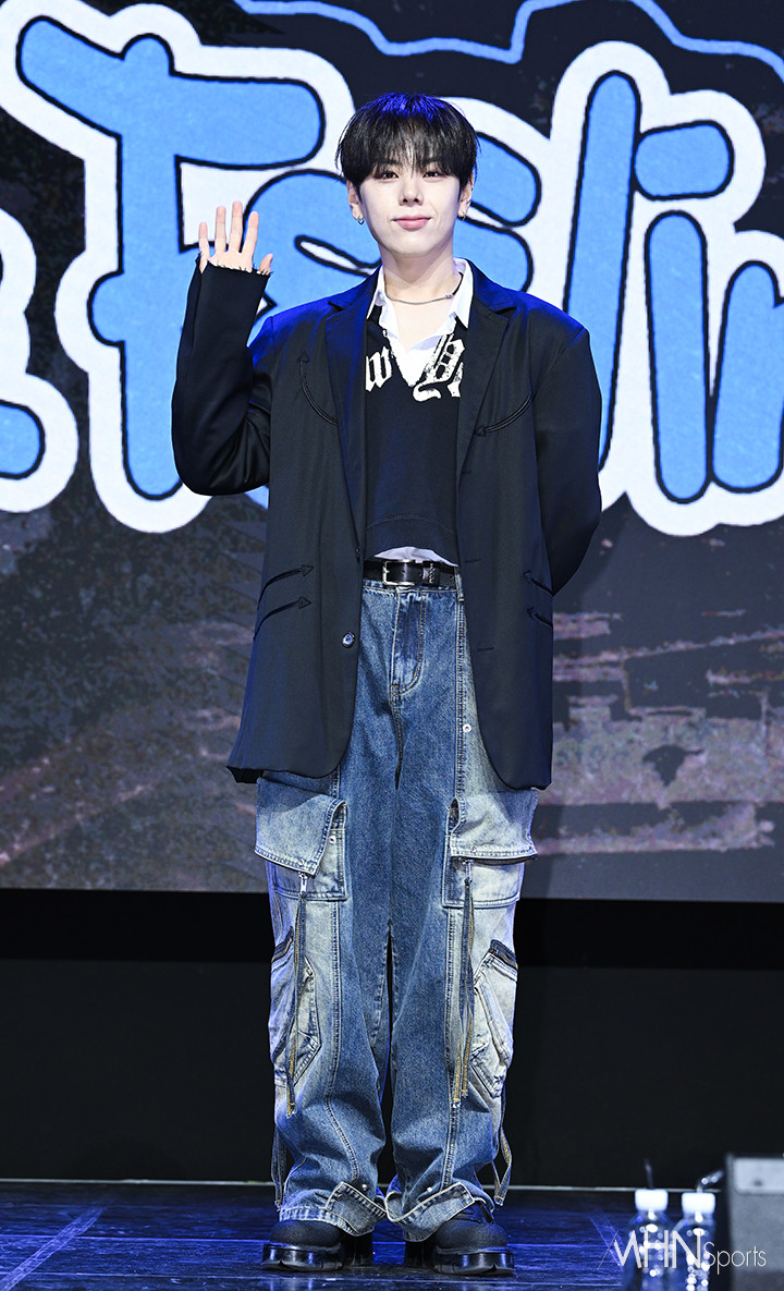 (MHN스포츠 이현지 기자) 그룹 위아이 장대현이 15일 오후 서울 서대문구 예스24 원더로크홀에서 진행된 미니 7집 'The Feelings'(더 필링스) 발매 기념 프레스 쇼케이스에서 인사를 하고 있다.