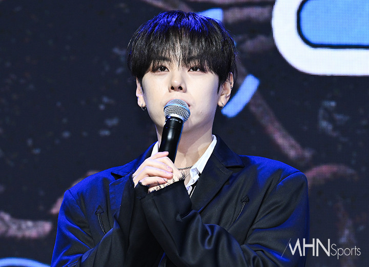 (MHN스포츠 이현지 기자) 그룹 위아이 장대현이 15일 오후 서울 서대문구 예스24 원더로크홀에서 진행된 미니 7집 'The Feelings'(더 필링스) 발매 기념 프레스 쇼케이스에서 인사를 하고 있다.