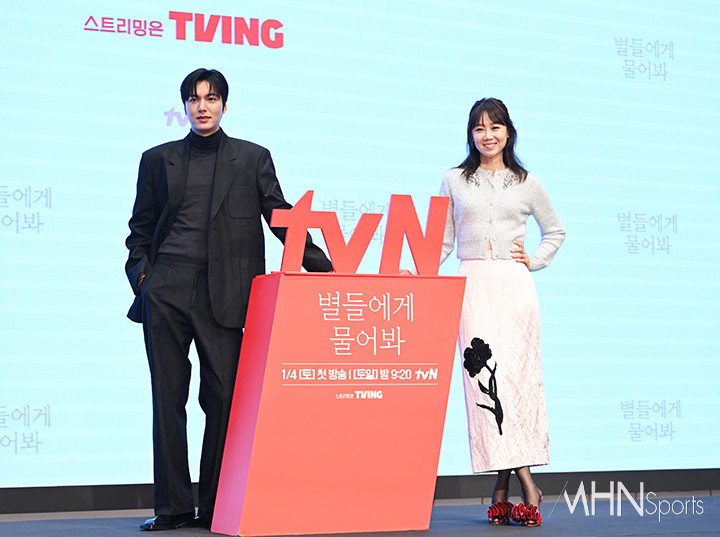 (MHN스포츠 이현지 기자) 배우 이민호-공효진이 18일 오후 서울 구로구 디큐브시티 더 세인트에서 진행된 '별들에게 물어봐' 제작발표회에 참석해 포토타임을 갖고 있다.