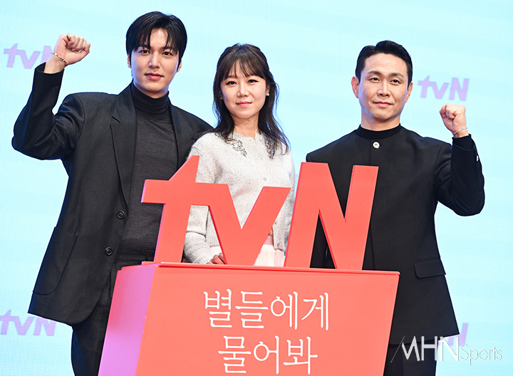 (MHN스포츠 이현지 기자) 배우 이민호-공효진-오정세가 18일 오후 서울 구로구 디큐브시티 더 세인트에서 진행된 '별들에게 물어봐' 제작발표회에 참석해 포토타임을 갖고 있다.