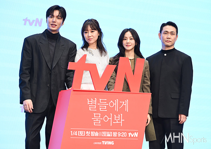 (MHN스포츠 이현지 기자) 배우 이민호, 공효진, 한지은, 오정세가 18일 오후 서울 구로구 디큐브시티 더 세인트에서 진행된 '별들에게 물어봐' 제작발표회에 참석해 포토타임을 갖고 있다.