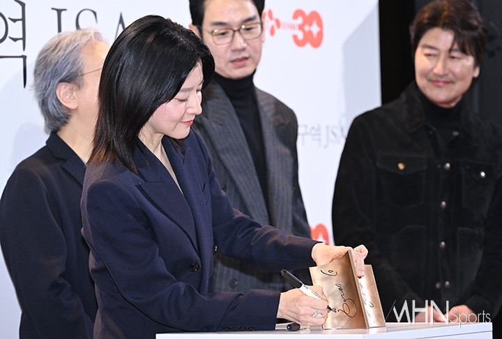 (MHN스포츠 이현지 기자) 박찬욱 감독이 4일 오후 서울 용산구 CGV용산아이파크몰점에서 진행된 '공동경비구역 JSA' 비저너리 선정 기념 행사에 참석해 트로피에 사인하고 있다.