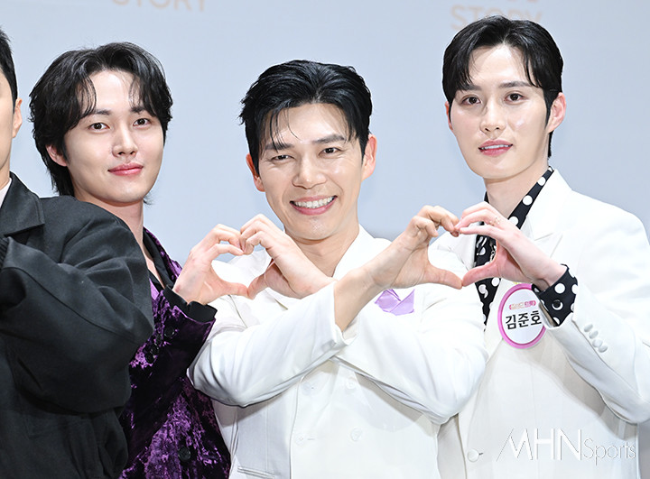 (MHN스포츠 이현지 기자) 배우 이태리, 지승현, 전 펜싱선수 김준호가 4일 오후 서울 구로구 라마다서울 신도림 호텔에서 진행된 트롯 예능 '잘생긴 트롯' 제작발표회에 참석해 포토타임을 갖고 있다.