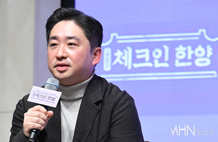 (MHN스포츠 이지숙 기자) 명현우 감독이 16일 오전 서울 강남구 논현동 엘리에나 호텔에서 열린 채널A '체크인 한양' 제작발표회에 참석해 인사말을 하고. 있다.