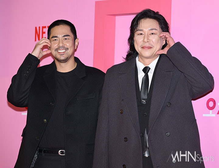 (MHN스포츠 이지숙 기자) 배우 전석호, 김법래가 9일 오후 서울 중구 동대문디자인플라자에서 열린 넷플릭스 '오징어 게임 시즌2'(감독 황동혁) 월드 프리미어 이벤트에 참석해 포즈를 취하고 있다.