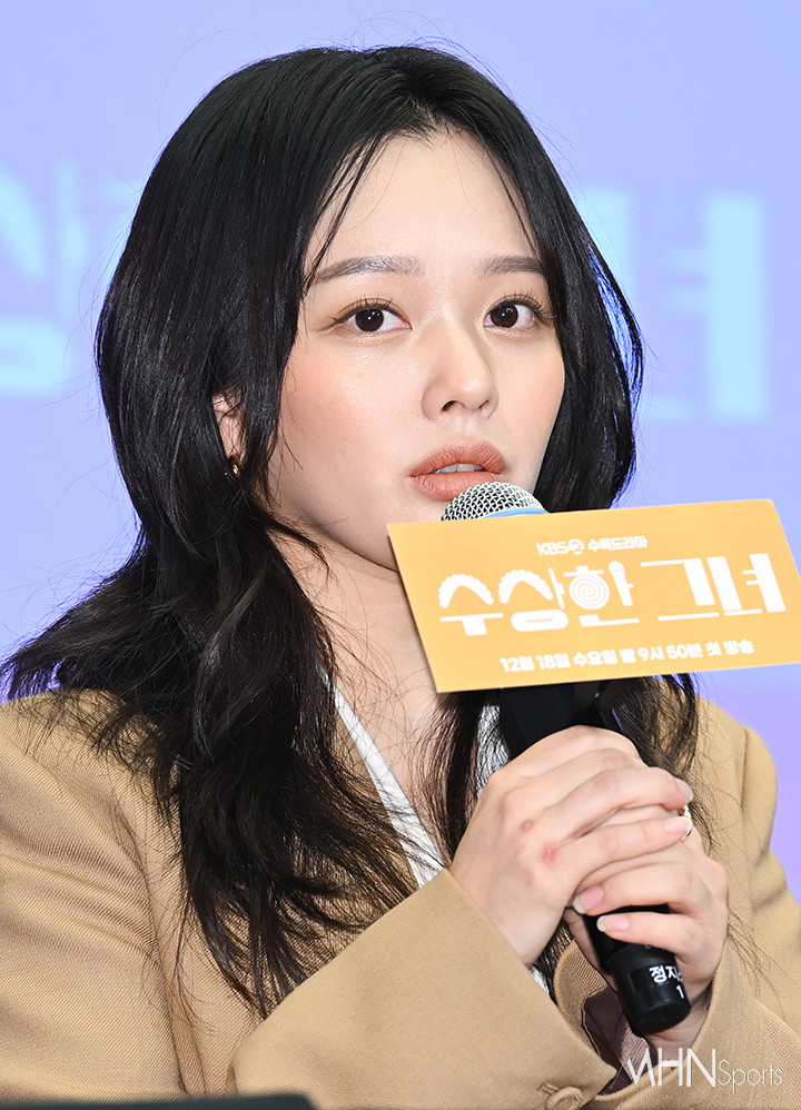 (MHN스포츠 이현지 기자) 배우 정지소가 12일 오후 서울 마포구 스탠포드호텔 서울에서 진행된 드라마 '수상한 그녀' 제작발표회에 참석해 질문에 답하고 있다.