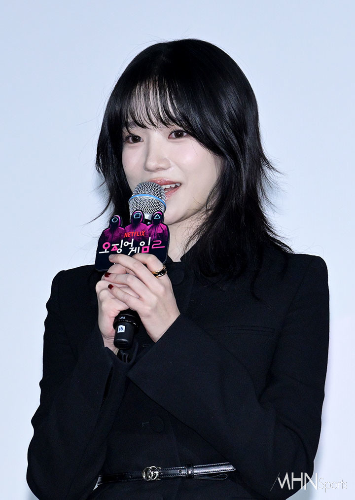 (MHN스포츠 이지숙 기자) 배우 조유리가 9일 오전 서울 중구 동대문디자인플라자에서 열린 넷플릭스 '오징어 게임 시즌2'(감독 황동혁) 제작발표회에 참석해 질의응답 시간을 가지고 있다.