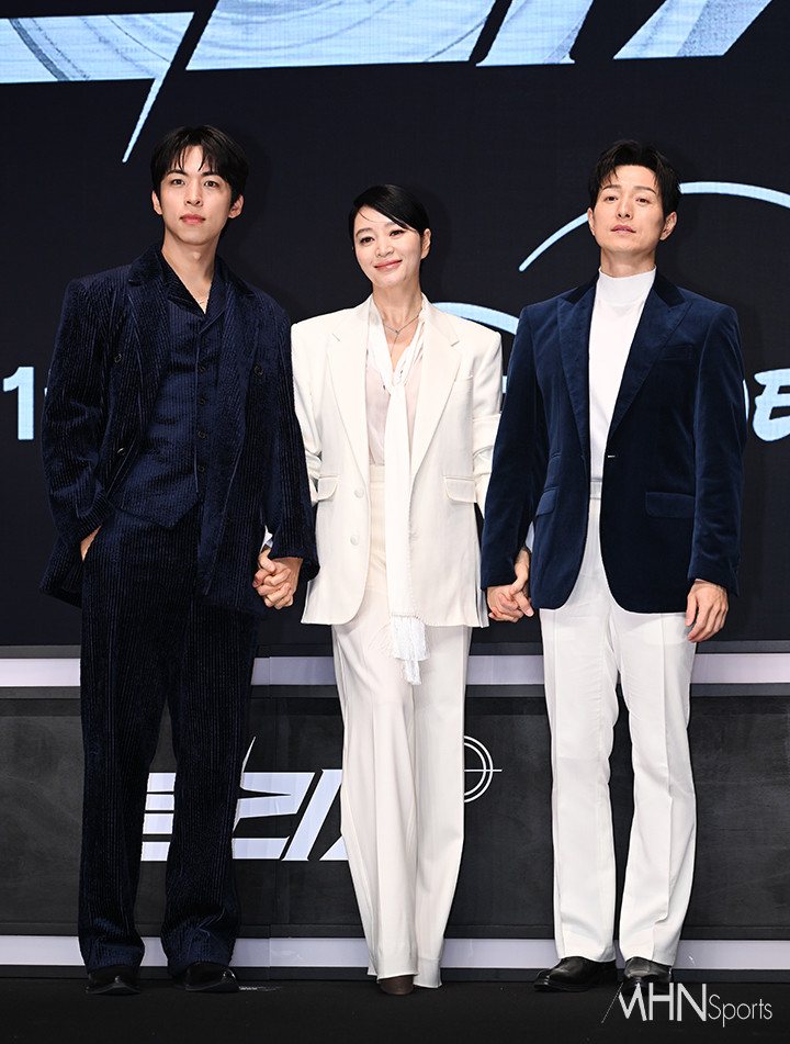 (MHN스포츠 이현지 기자) 배우 주종혁, 김혜수, 정성일이 8일 오전 서울 영등포구 콘래드 서울 호텔에서 진행된 '트리거' 제작발표회에 참석해 포토타임을 갖고 있다.