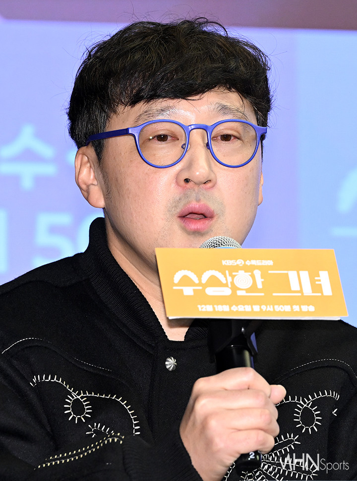(MHN스포츠 이현지 기자) 박용순 감독이 12일 오후 서울 마포구 스탠포드호텔 서울에서 진행된 드라마 '수상한 그녀' 제작발표회에 참석해 질문에 답하고 있다.