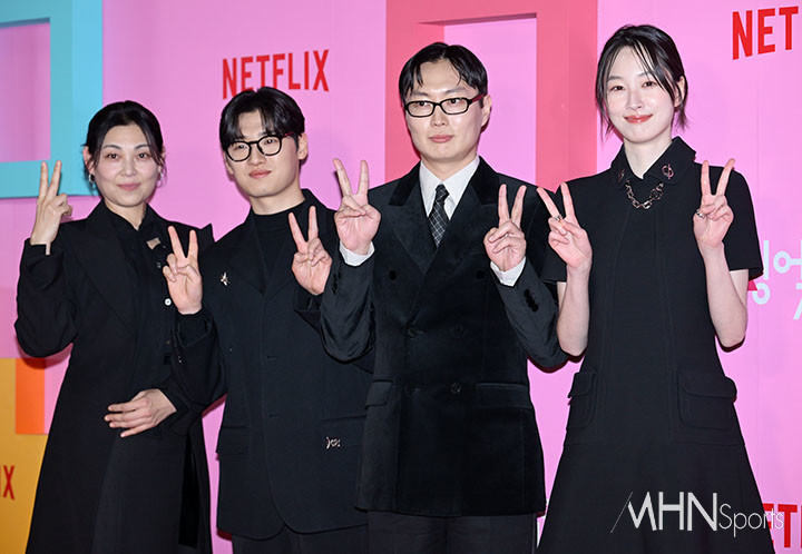 (MHN스포츠 이지숙 기자) 배우 채국희, 이다윗, 노재원, 원지안이 9일 오후 서울 중구 동대문디자인플라자에서 열린 넷플릭스 '오징어 게임 시즌2'(감독 황동혁) 월드 프리미어 이벤트에 참석해 포즈를 취하고 있다.