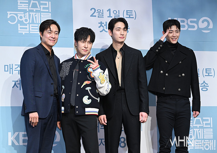 (MHN스포츠 이현지 기자) 배우 최대철, 김동완, 윤박, 이석기가 22일 오후 서울 구로구 라마다 서울 신도림에서 진행된 '독수리 5형제를 부탁해!' 제작발표회에 참석해 포토타임을 갖고 있다.