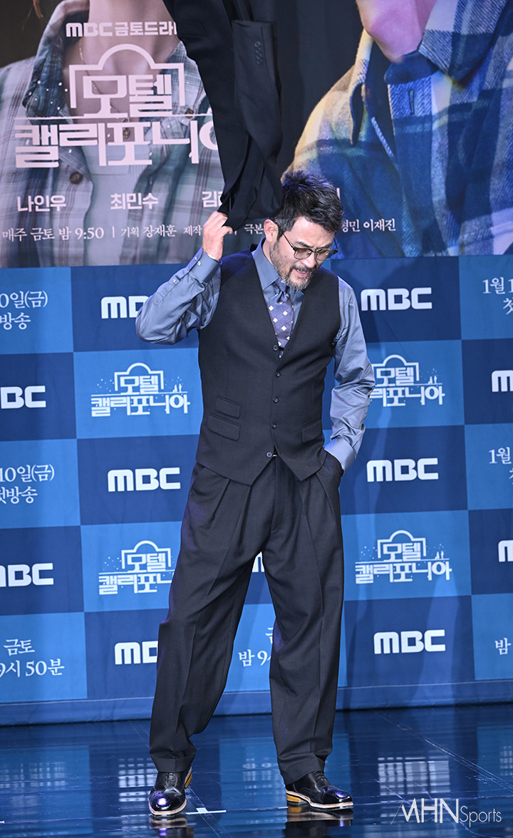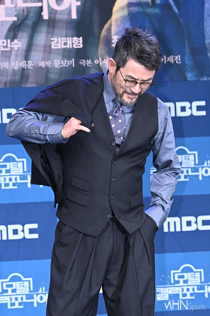 (MHN스포츠 이현지 기자) 배우 최민수가 9일 오후 서울 마포구 상암 MBC 골든마우스홀에서 진행된 새 드라마 '모텔 캘리포니아' 제작발표회에 참석해 포토타임을 갖고 있다.