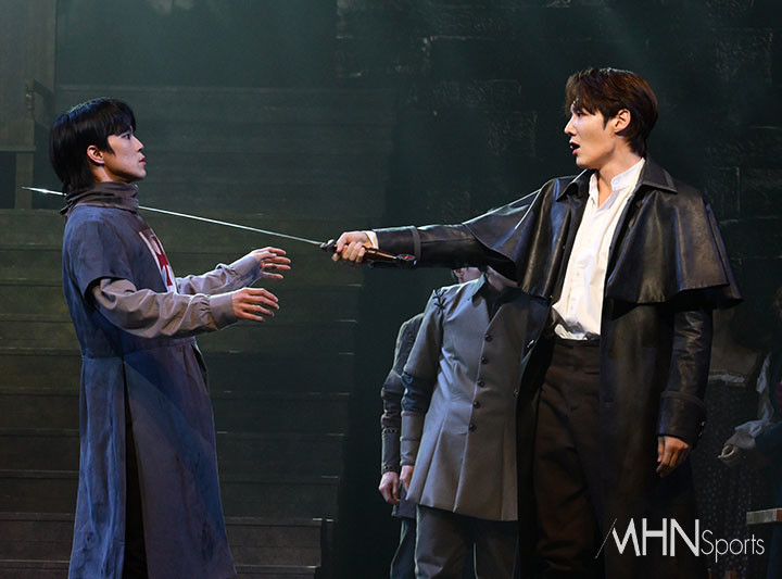 (MHN스포츠 이지숙 기자) 배우 최진혁이 12일 오후 서울 서초구 한전아트센터에서 열린 뮤지컬 '블러디 러브' 프레스콜에서 시연을 선보이고 있다.