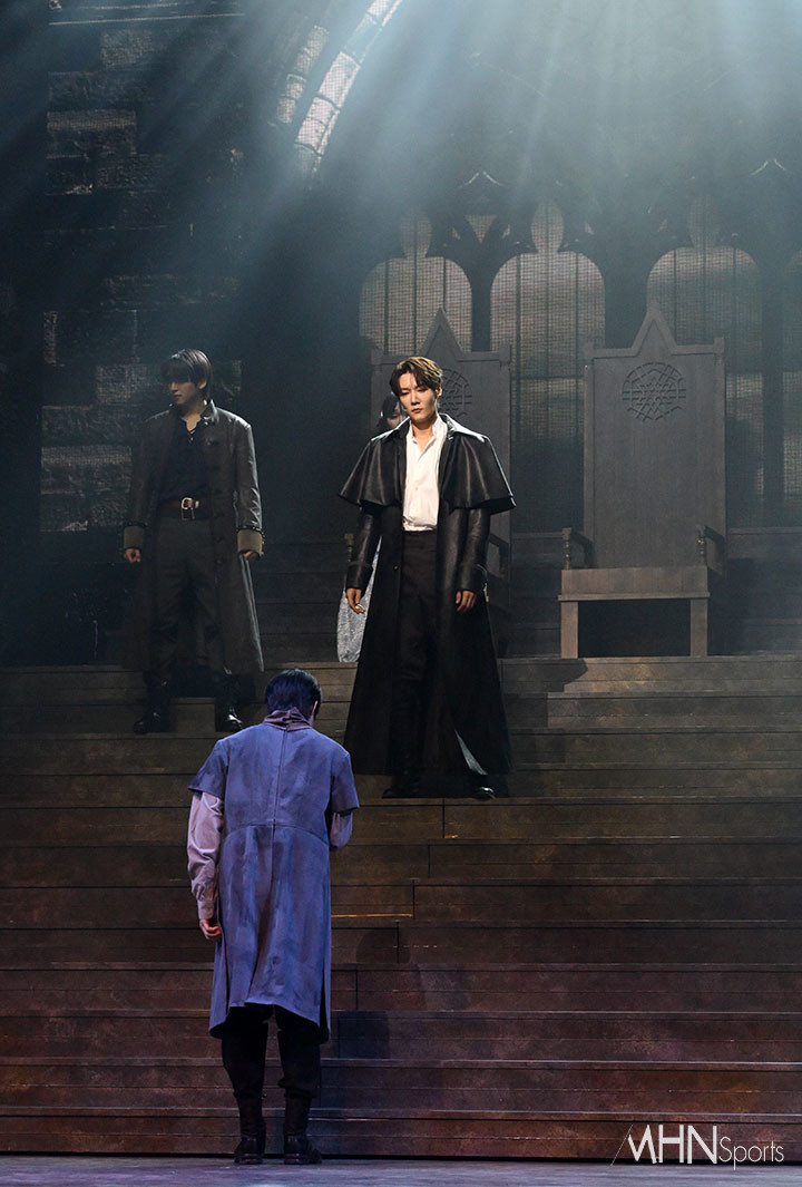 (MHN스포츠 이지숙 기자) 배우 상연, 최진혁, 앙상블이 12일 오후 서울 서초구 한전아트센터에서 열린 뮤지컬 '블러디 러브' 프레스콜에서 시연을 선보이고 있다.