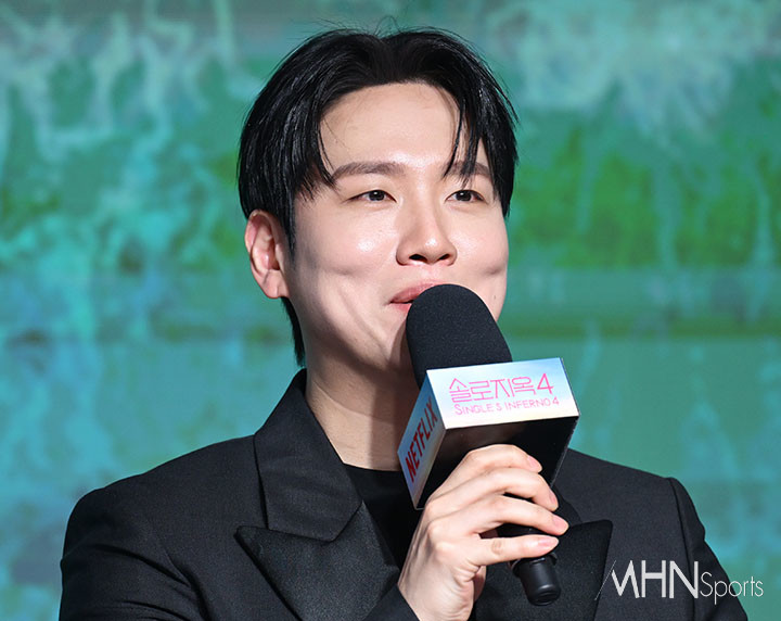 (MHN스포츠 이지숙 기자) 가수 한해가 8일 오전 서울 마포구 호텔 나루 서울 엠갤러리에서 열린 넷플릭스 예능 ‘솔로지옥’ 제작발표회에 참석했다.