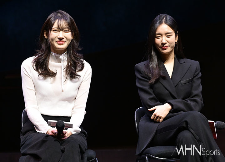 (MHN스포츠 이지숙 기자) 배우 홍서영, 안은진이 9일 오후 서울 명동 국립극단 명동예술극장에서 열린 연극 '사일런트 스카이' 간담회에 참석해 질의응답 시간을 가지고 있다.