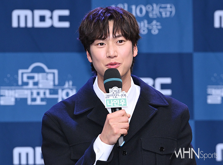(MHN스포츠 이현지 기자) 배우 나인우가 9일 오후 서울 마포구 상암 MBC 골든마우스홀에서 진행된 새 드라마 '모텔 캘리포니아' 제작발표회에 참석해 질문에 답하고 있다.