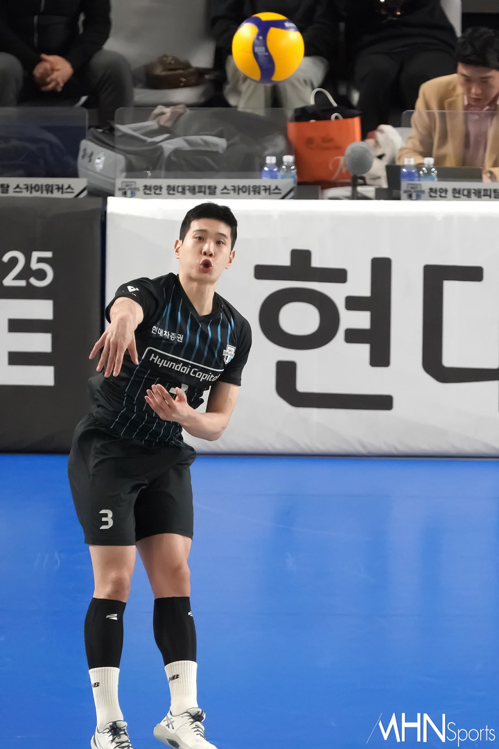 (MHN스포츠 천안, 박태성 기자) 7일 오후 충남 천안에 위치한 유관순체육관에서 '도드람 2024-2025 프로배구’ 남자부 현대캐피탈 스카이워커스와 OK저축은행 읏맨 경기가 열렸다.
