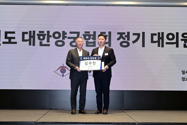 공식 총회 종료 후 진행된 2024년도 대한양궁협회 유공자 시상식에서는 2024 파리 올림픽에서 3관왕을 기록하며 역대 한국 선수 올림픽 최다 금메달(5개) 보유자로 등극한 김우진(청주시청)이 최우수선수상을 수상했다.