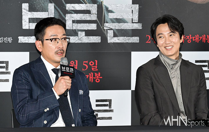 (MHN스포츠 정에스더 기자) 지난 23일 서울 용산구 CGV용산아이파크몰에서 영화 '브로큰' 언론배급시사회 및 기자간담회가 열렸다. 이날은 김진황 감독과 배우 하정우, 김남길, 유다인, 정만식, 임성재가 참석했다.