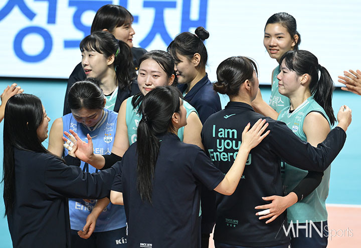 GS칼텍스 선수들이 연패탈출에 눈물을 보이고 있다.