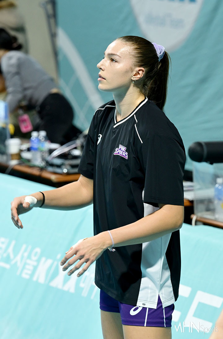 흥국생명의 대체 외국인 선수로 합류한 마테이코가 웜업을 하고 있다.